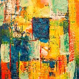 نقاشی اکسپرسیونیسم پیکسلیتو رنگارنگ تیره سرد با رنگ روغن زرد و آبی
