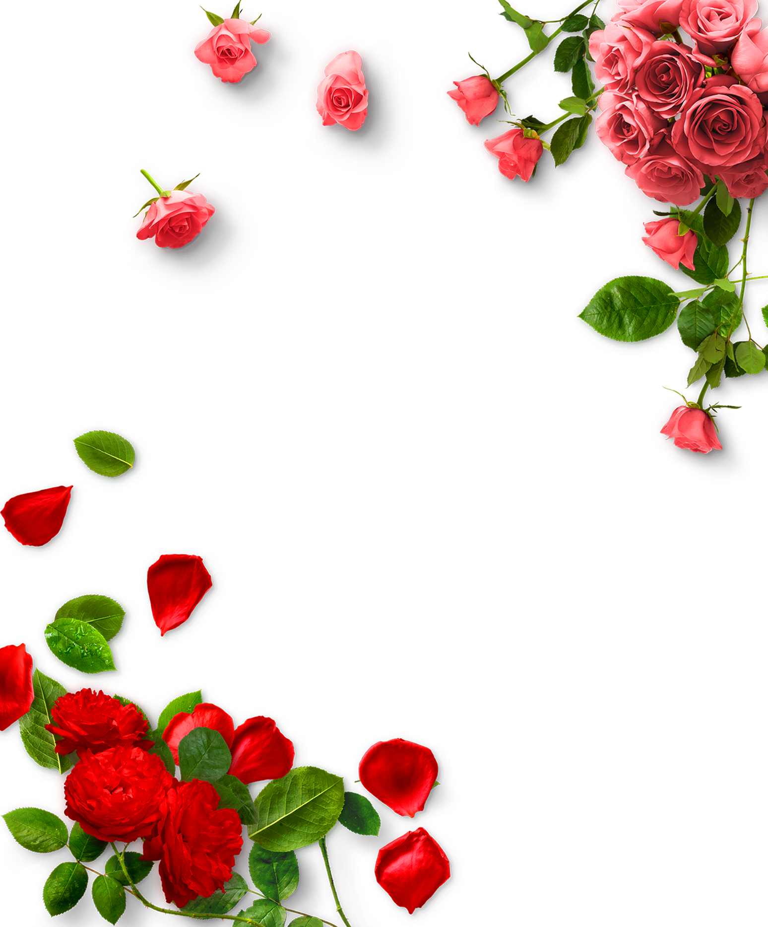 حاشیه گل و قلب های قرمز بدون پس زمینه برای نوشتن متن های عاشقانه