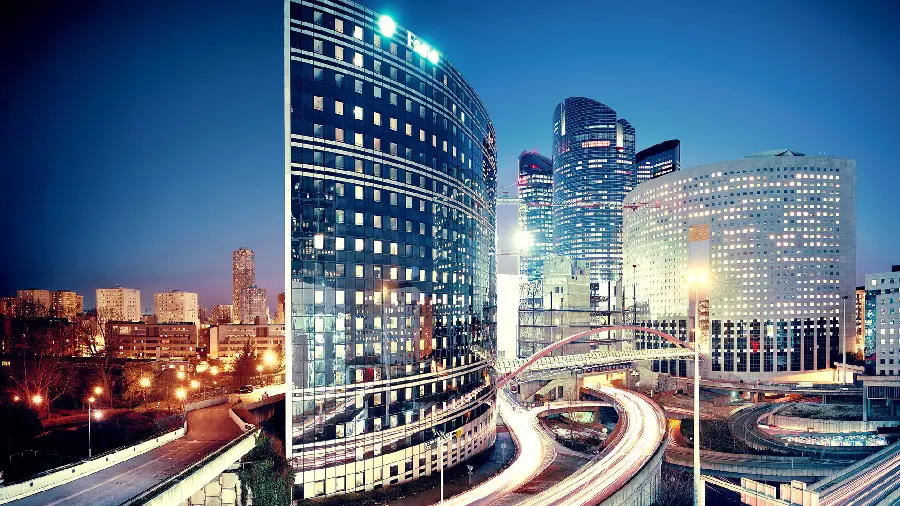 تصویر ساختمان های نورانی جذاب در شهر مدرن پیشرفته