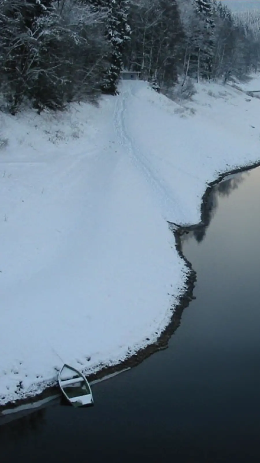 والپیپر ساحل برفی همراه با قایق چوبی برای گوشی سامسونگ A13