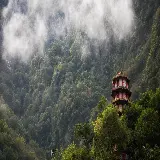 عکس خیلی زیبا از خانه قرمز سفید در جنگل با کیفیت عالی