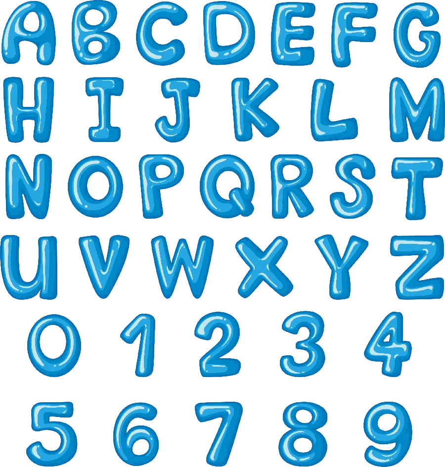عکس الفبای انگلیسی و اعداد انگلیسی PNG حباب صابون
