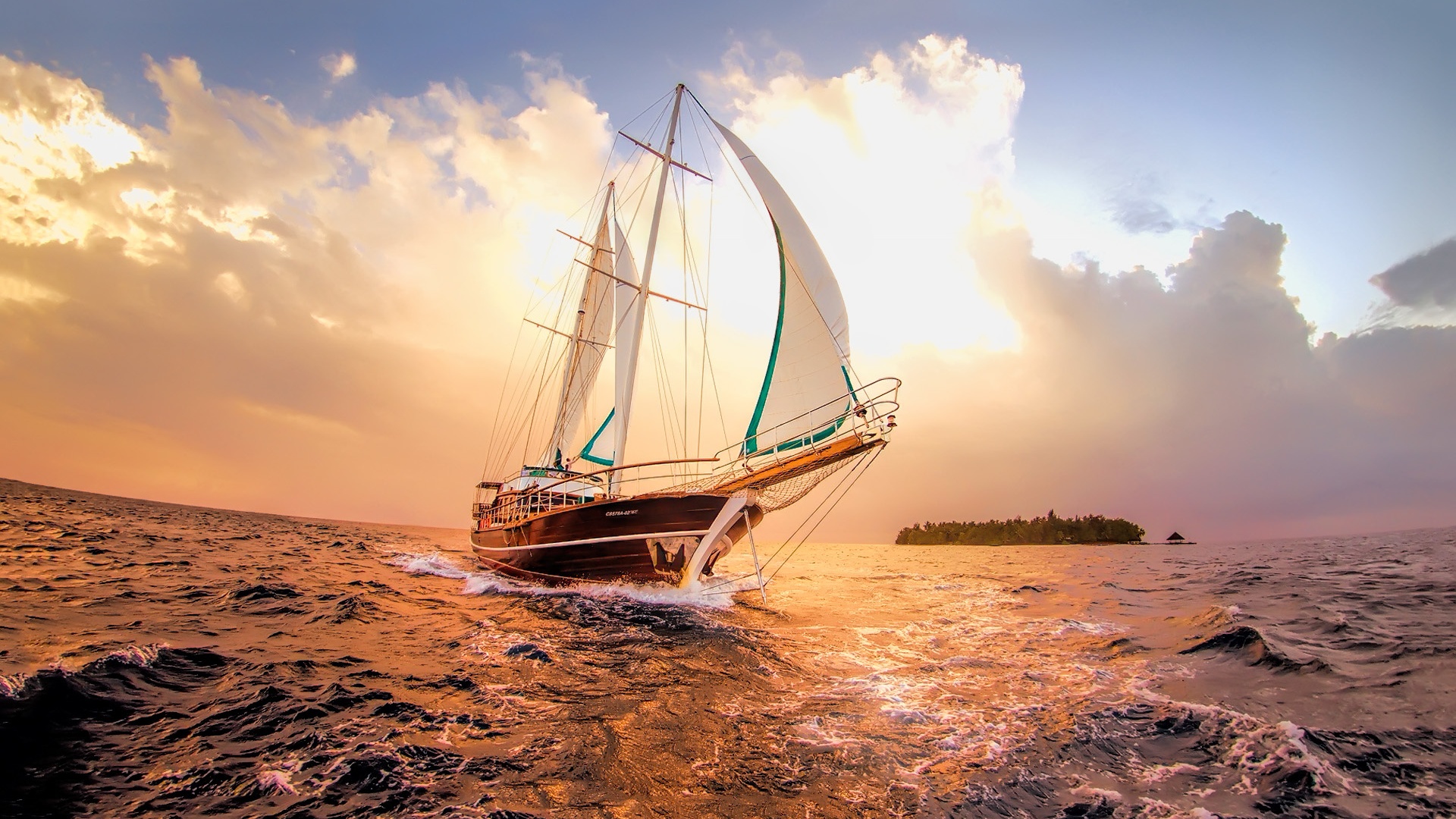 بک گراند دریای ناآرام به همراه کشتی بادبانی