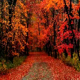 عکس زمینه از جاده ی محصور میان درخت های پاییز