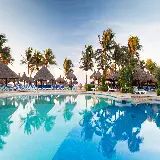 تصویر طبیعت و منظره ساحل شنی با درختان نخل
