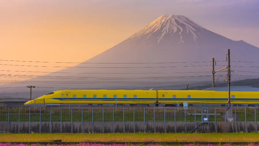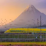 تصویر پس زمینه ای از قطار درحال حرکت در غروب طبیعت