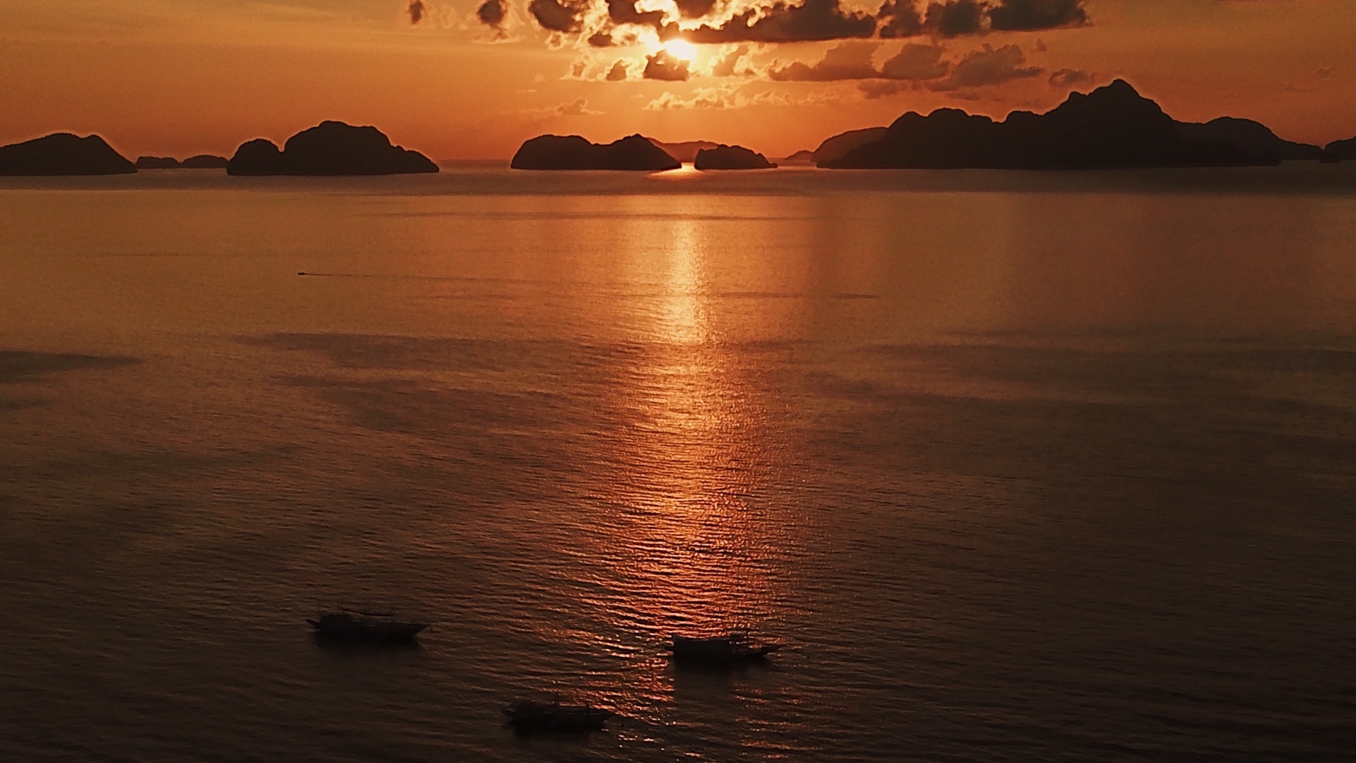 دانلود عکس پس زمینه از غروب آفتاب در وسط دریای وسیع