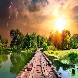 تصویر پل چوبی خوشگل درون جنگل پاییزی رنگارنگ با فرمت JPG