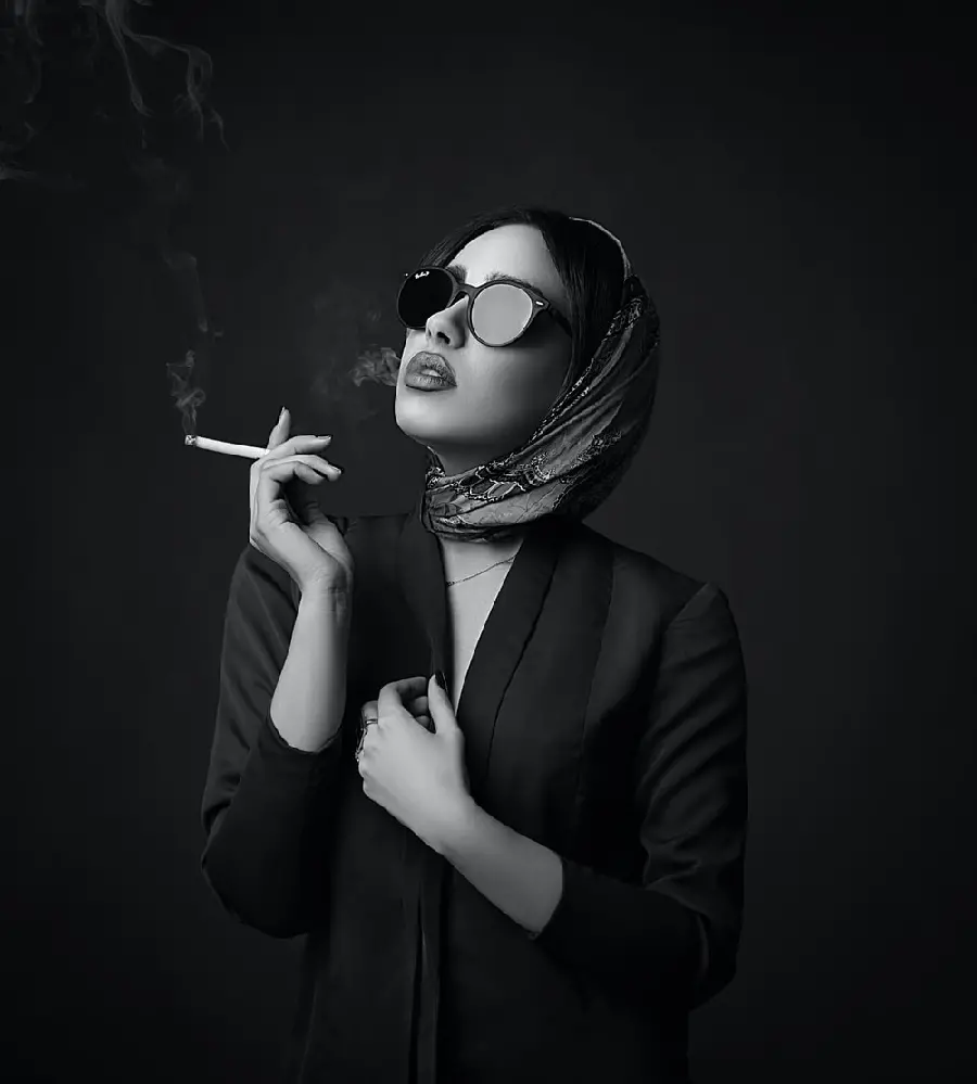 عکس پروفایل دختر در حال کشیدن سیگار در بک گراند مشکی