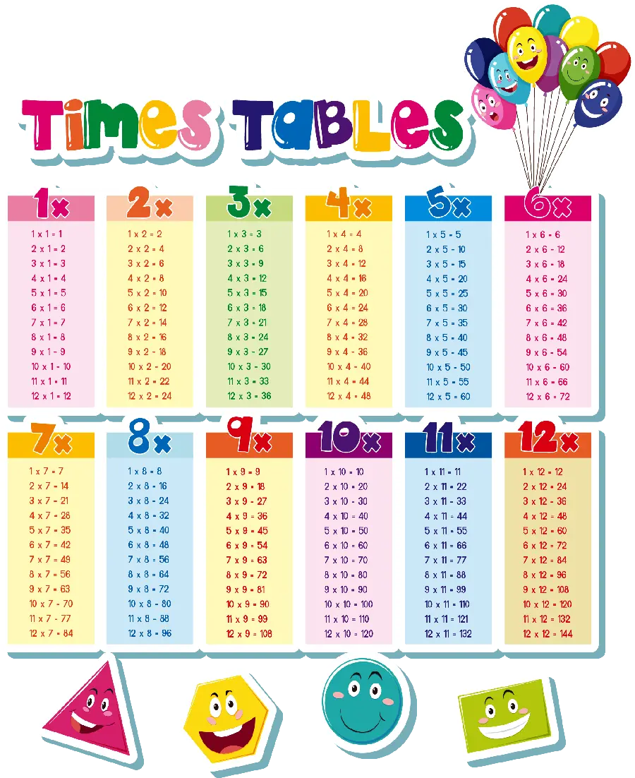 عکس جدول ضرب اعداد ریاضی با کیفیت بالا برای چاپ
