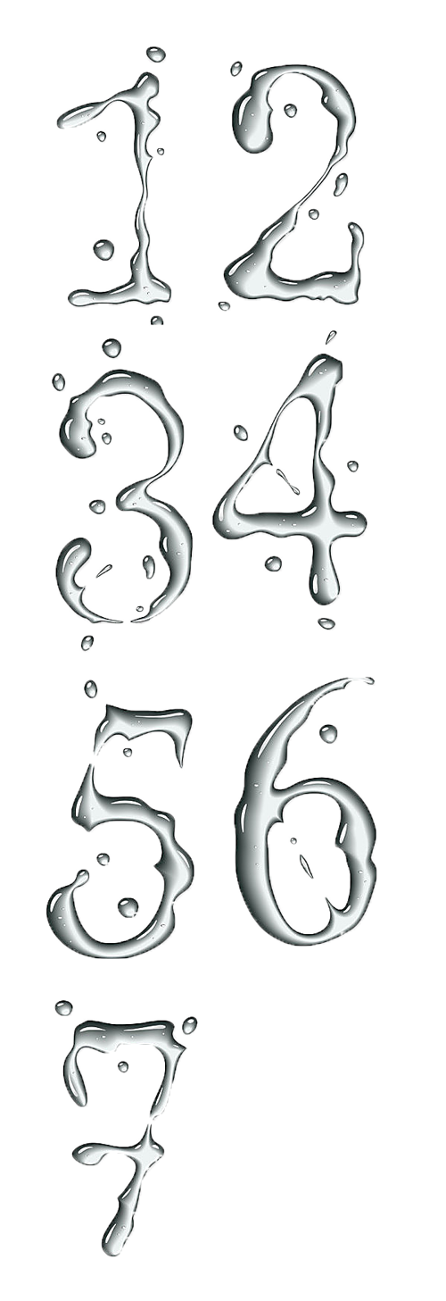 اعداد ریاضی png و شفاف به شکل آب مایع