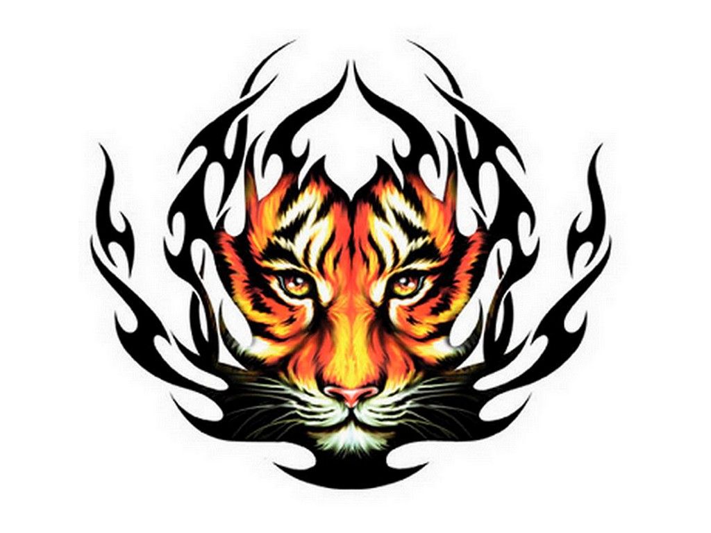 دانلود تتوی ببر آتشین رنگی با کیفیت بالا