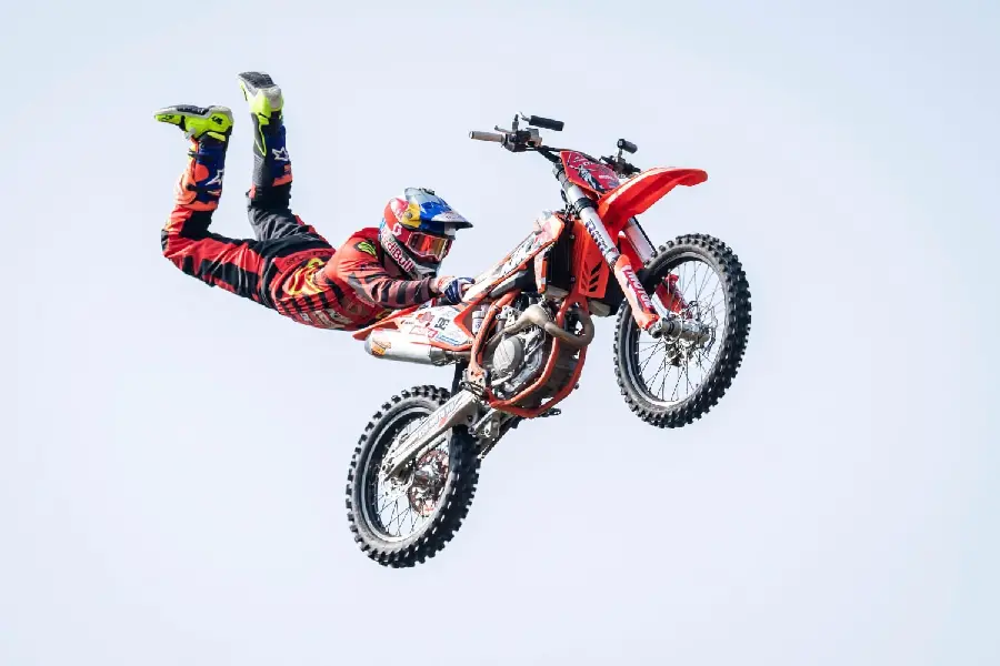 تصویر پرش و انجام حرکات نمایشی در هوا با موتور تریل