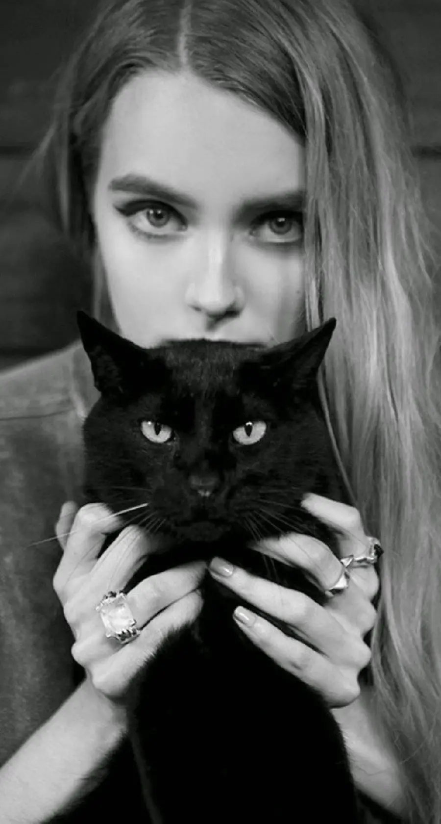 تصویر زمینه دخترونه از دختر خوشکل با گربهای سیاه در دستانش