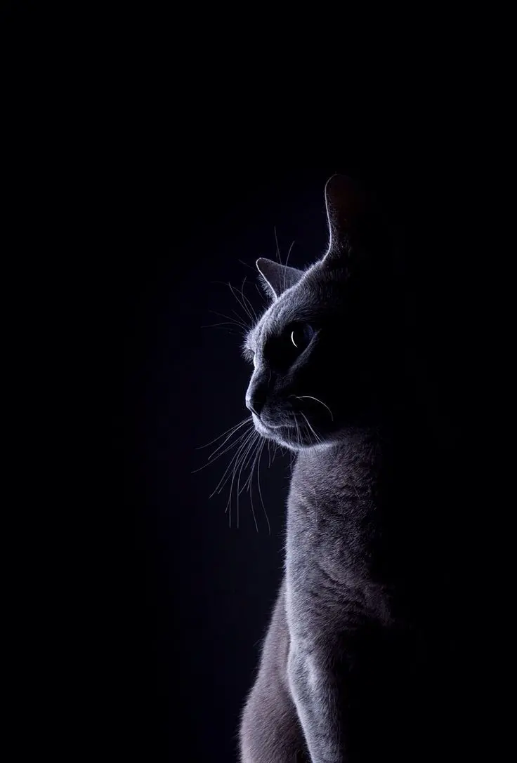 عکس زمینه از گربە سیاە باعظمت در تاریکی مطلق