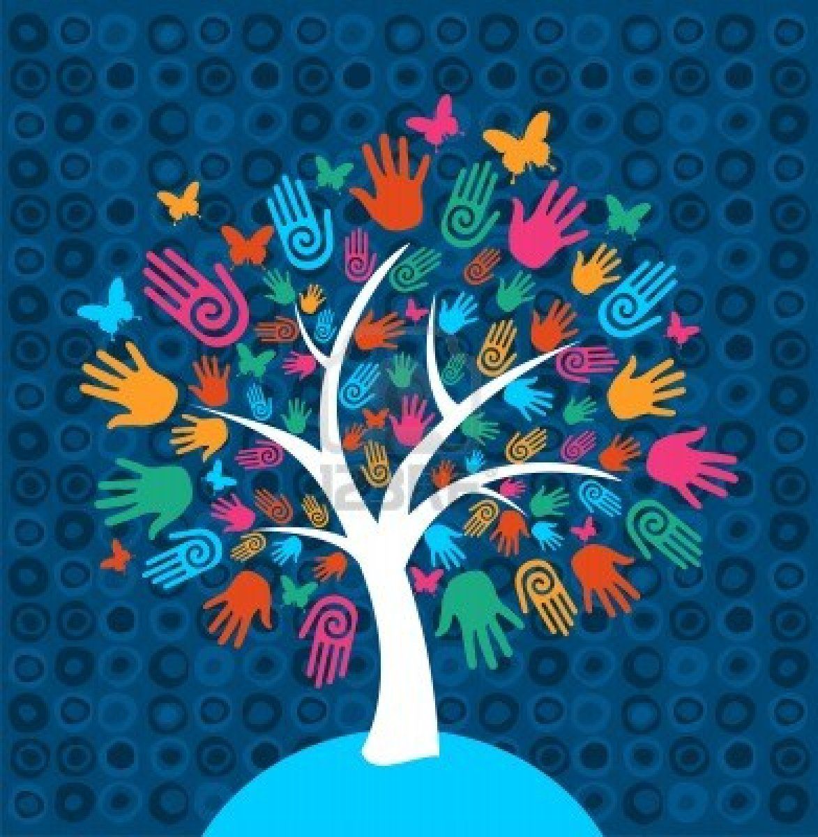 تصویر فوق العاده رویایی از درخت حقوق بشر با اثر دست های رنگی