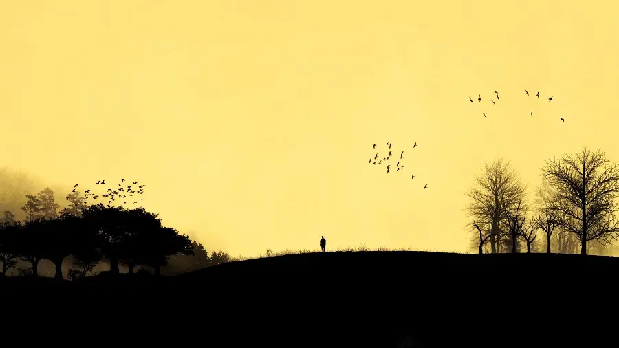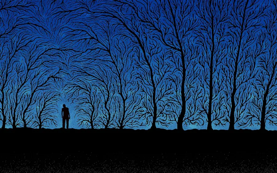 تصویر پروفایل غمگین مرد تنها میان درختان با کیفیت فورکی 4K