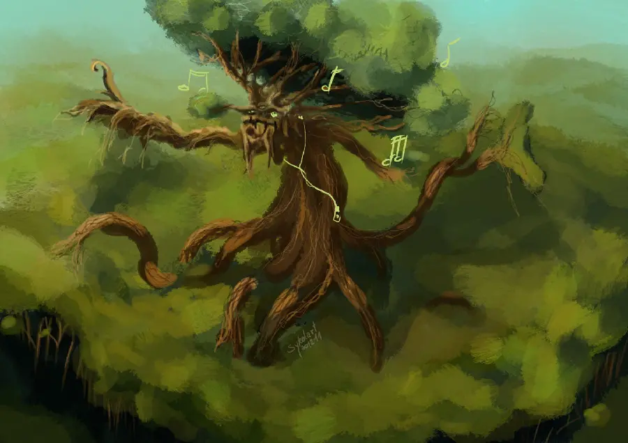 تصویر دارک و ترسناک مردهای درختی در حال مبارزه