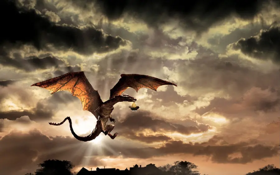پربازدید ترین عکس اژدها پرنده با بچه در حال پرواز در آسمان
