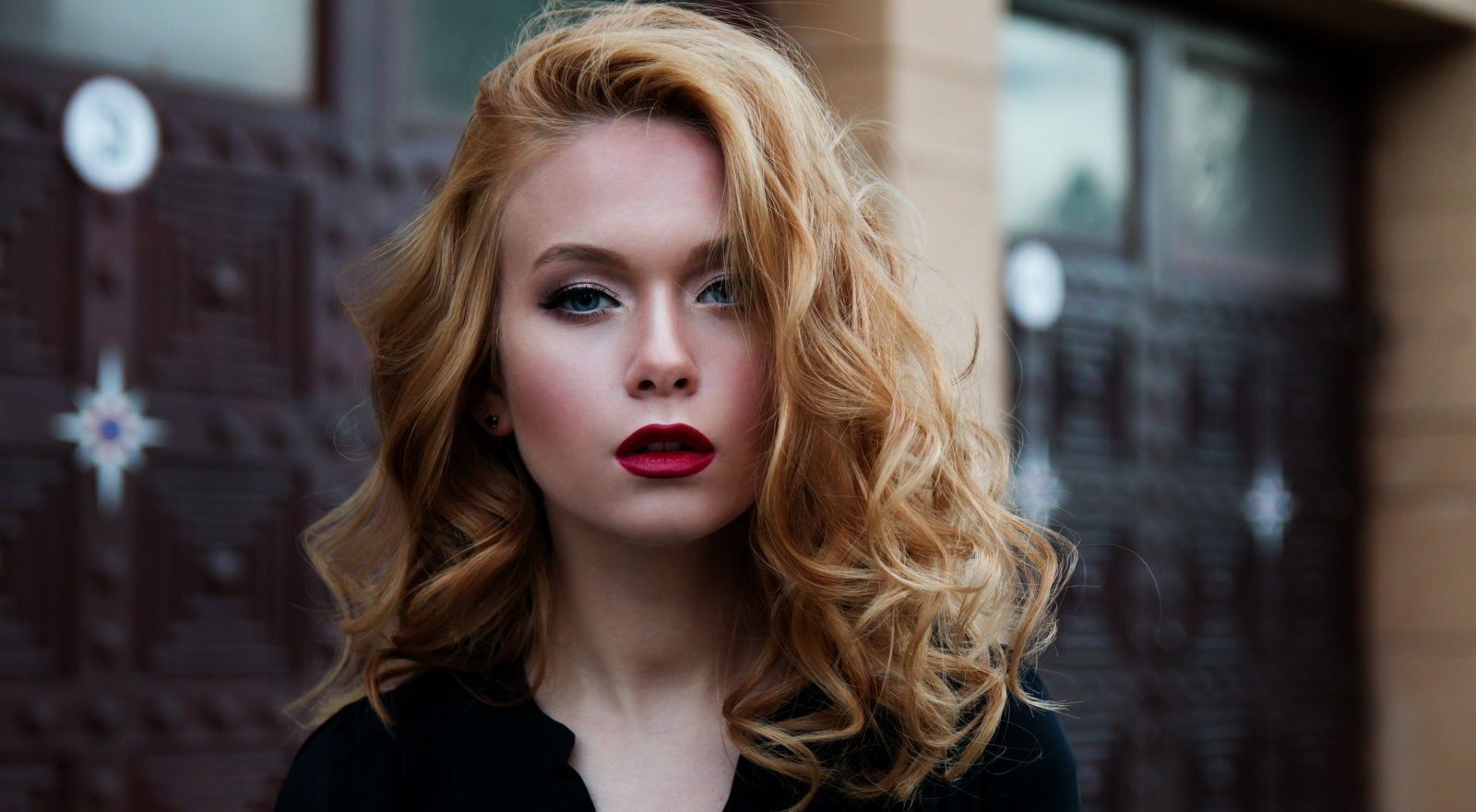 بک گراند دوست داشتی خاص لپتاب دختر مو بلوند روشن خوشگل و ناز با رژ لب قرمز رنگ باکیفیت HD