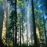 تصویر پرتوهای نور خورشید میان درختان بلند سکویا