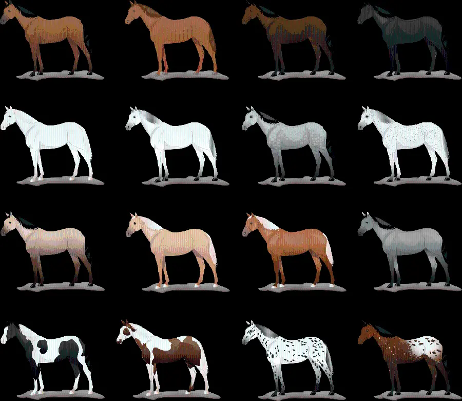 تصویر پی ان جی PNG انواع اسب ها با رنگ های مختلف و زمینه سفید