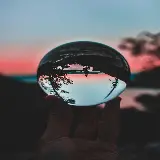 دانلود عکس توپ کریستالی شبیه قطره آب با زمینه غروب آفتاب