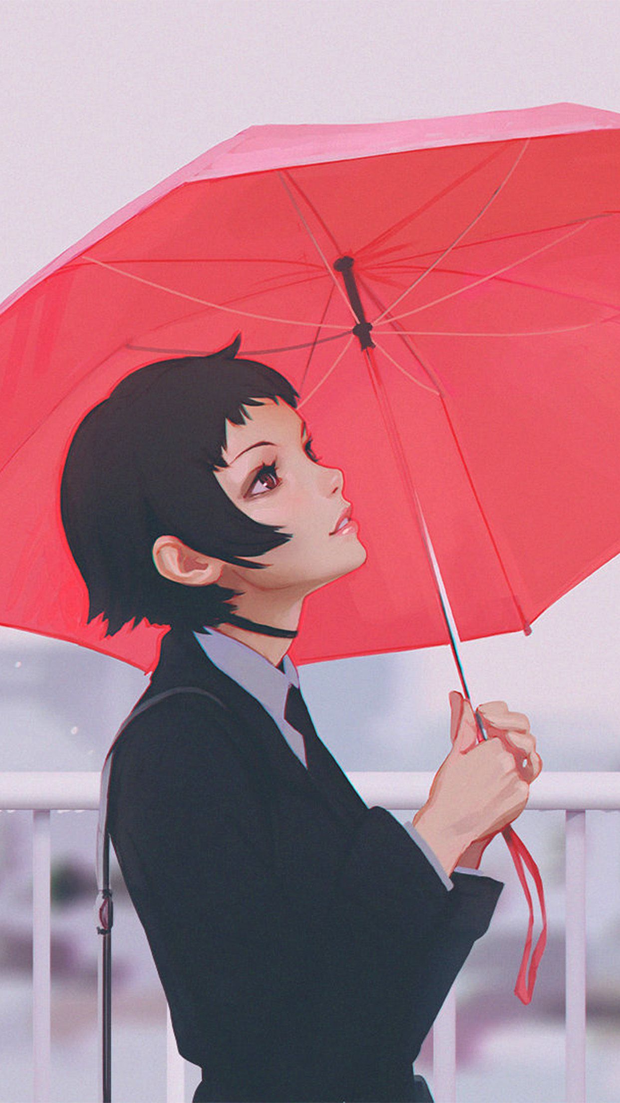 والپیپر رویایی موبایل با طرح دختر با چتر قرمز در باران