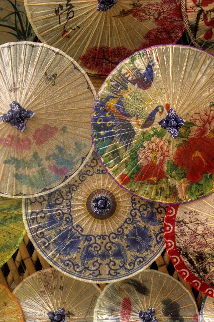 تصویر چترهای ژاپنی سنتی با طرح های متنوع برای صفحه گوشی