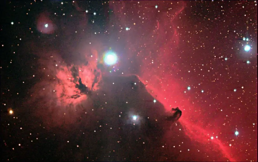تصویر سحابی سر اسب از نمای دور و با رنگهای متنوع