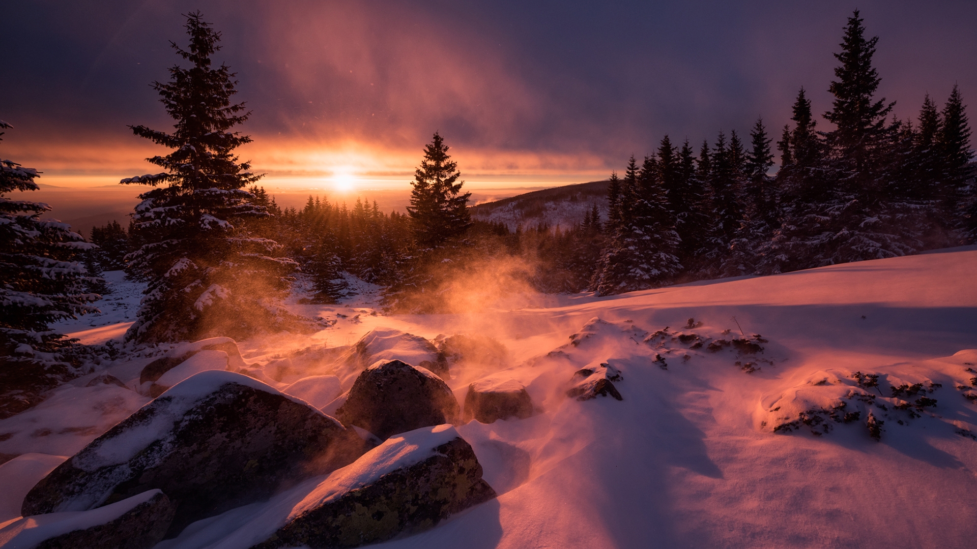 دانلود رایگان عکس Full HD از طلوع در کوه برفی