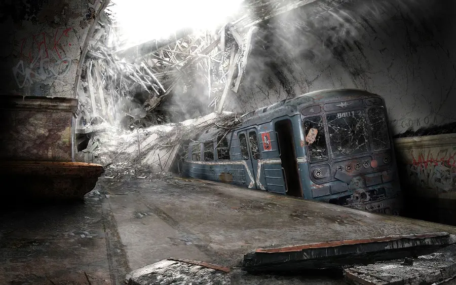 پس زمینه ای از متروی زیر زمینی ویران شده و متروکه
