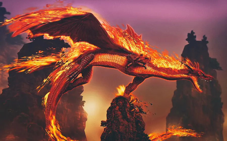 تصویر پس زمینه اژدهای آتشین و سوزاننده و نابود کننده