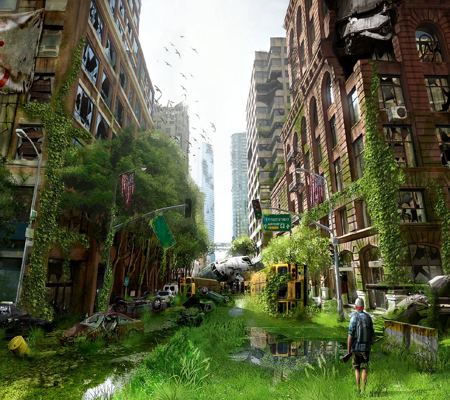 دانلود تصویر فانتزی و واقعی شهر متروکه سرسبز و پیشرفته