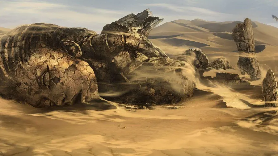 تصویر از منظره مجسمه ای فرود آمده و شکسته در هنر سورئال تاریک