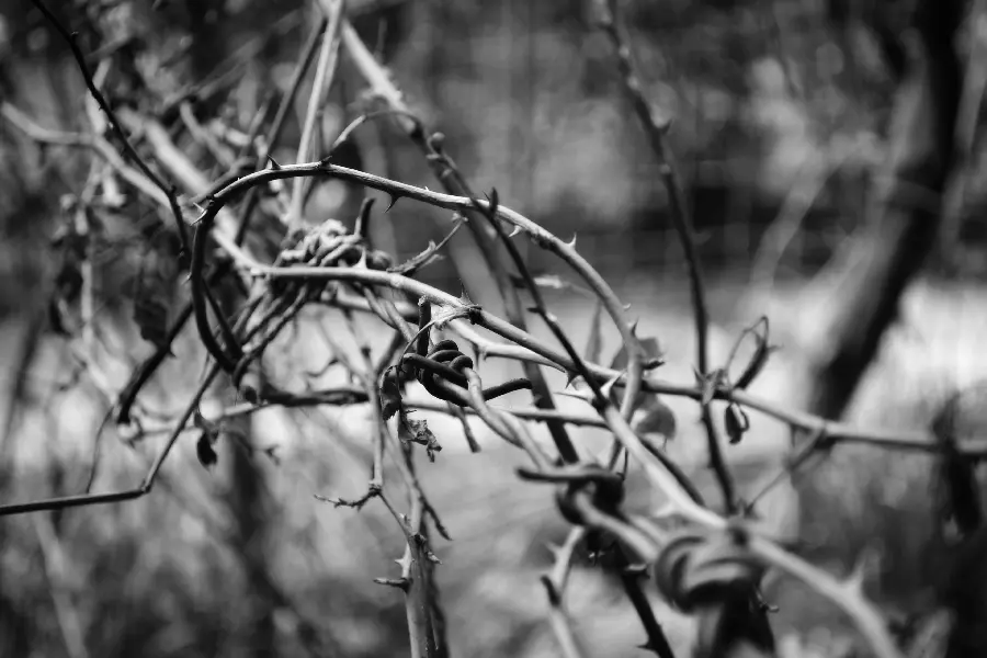 عکس زمینه سیاه و سفید سیم خاردار در زمینه محو و فولو