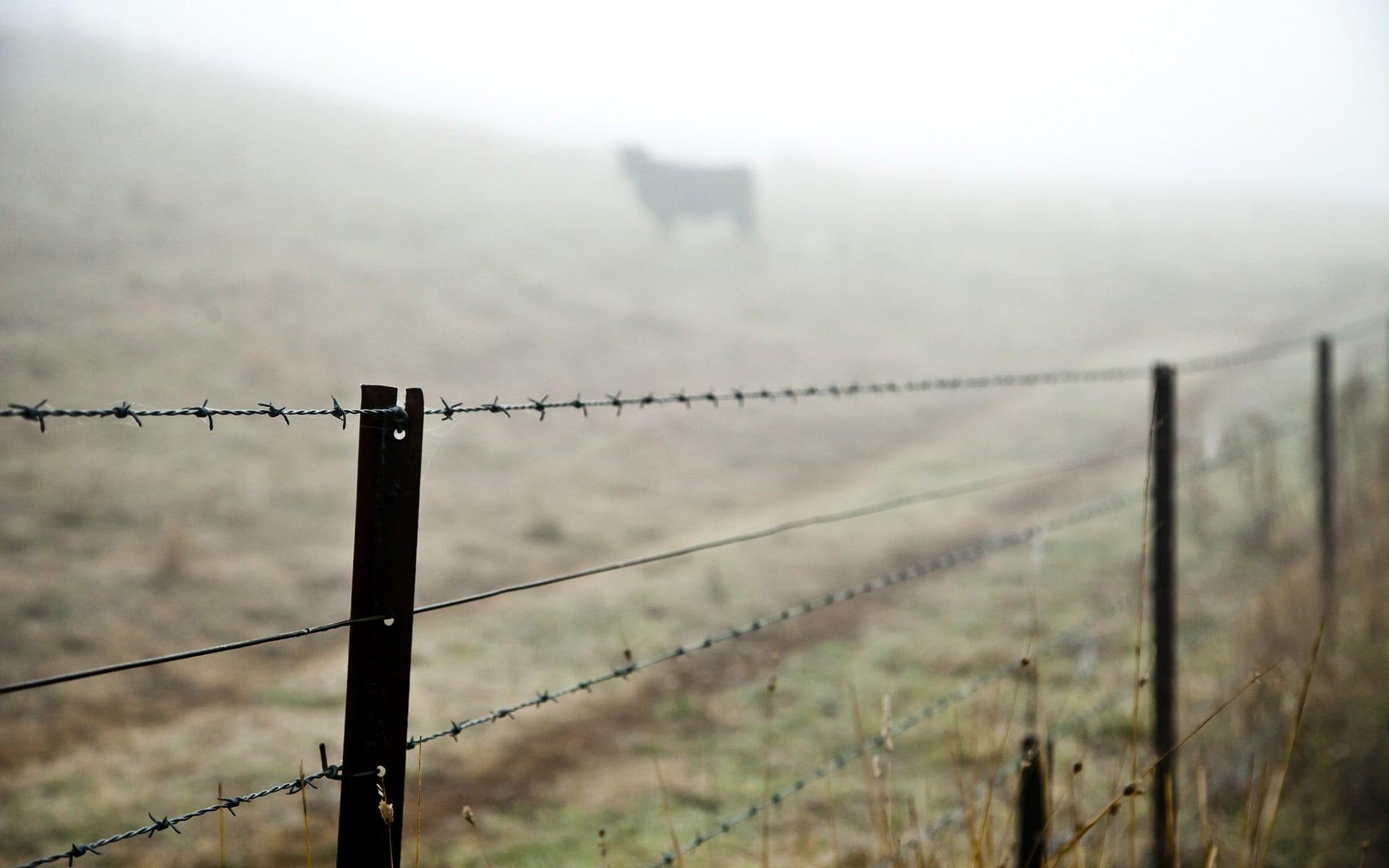 عکس زمینه با ادیت عالی از سیم خاردار در دشت و گندم زار
