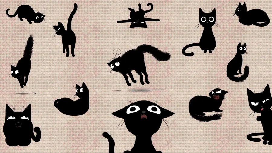 والپیپر انیمیشنی عاشقانه از دو گربه سیاه و سفید