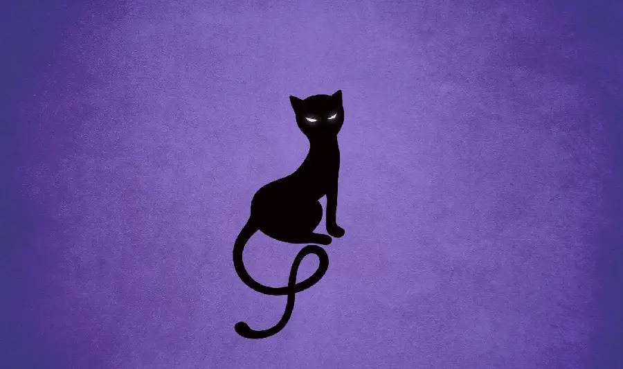 تصویر گرافیکی رویایی از گربه مشکی با زمینه بنفش