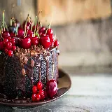 عکس استوک شیرینی شکلاتی دیزاین شده با البالوهای تازه