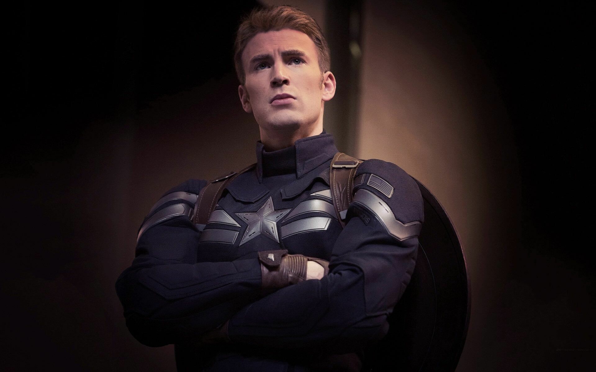 عکس زمینه پرتره کریس ایوانز در نقش کاپیتان آمریکا با بک گراند مشکی