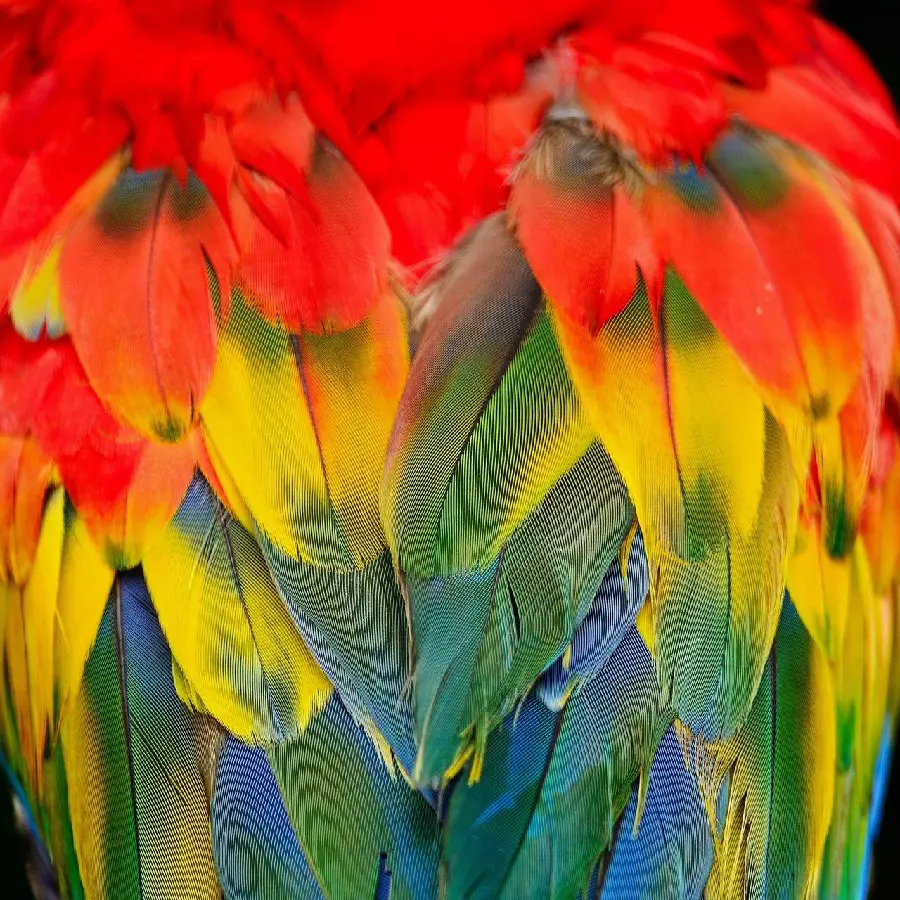 عکس میکروسکوپی پر های رنگی طوطی ماکائو با وضوح عالی 1401