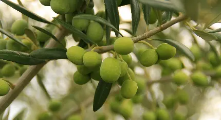 پوستر جالب از شاخە درخت زیتون با میوە و برگهایش با زمینە سبز رنگ