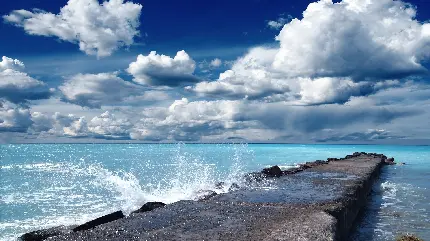 عکس زمینه باحال هنری از اسکله چوبی و قدیمی با آسمان ابرهای سفید