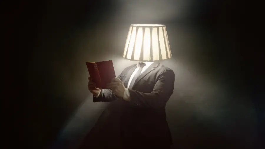 بک گراند جالب و انگیزشی از مرد سر چراغی در حال مطالعه برای کامپیوتر