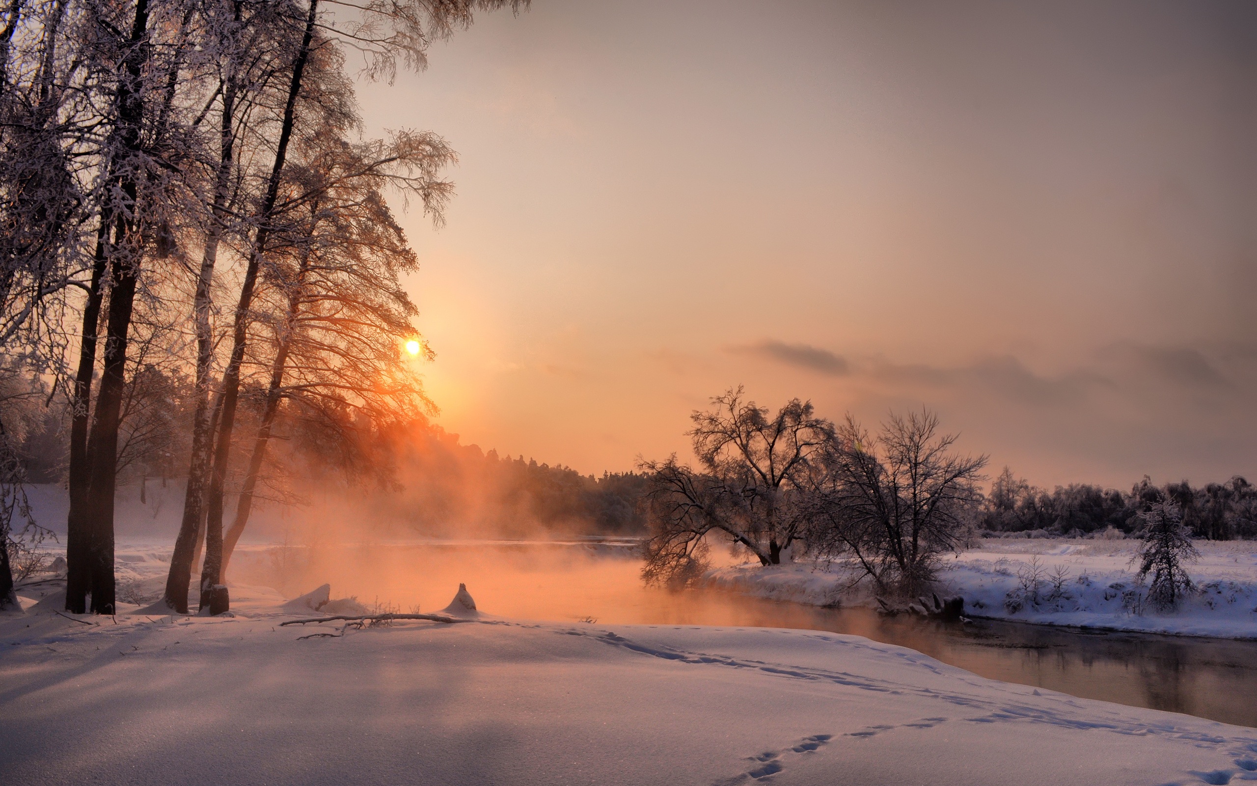 دانلود بکگراند خاص و دیدنی زمستانی هنگام غروب آفتاب