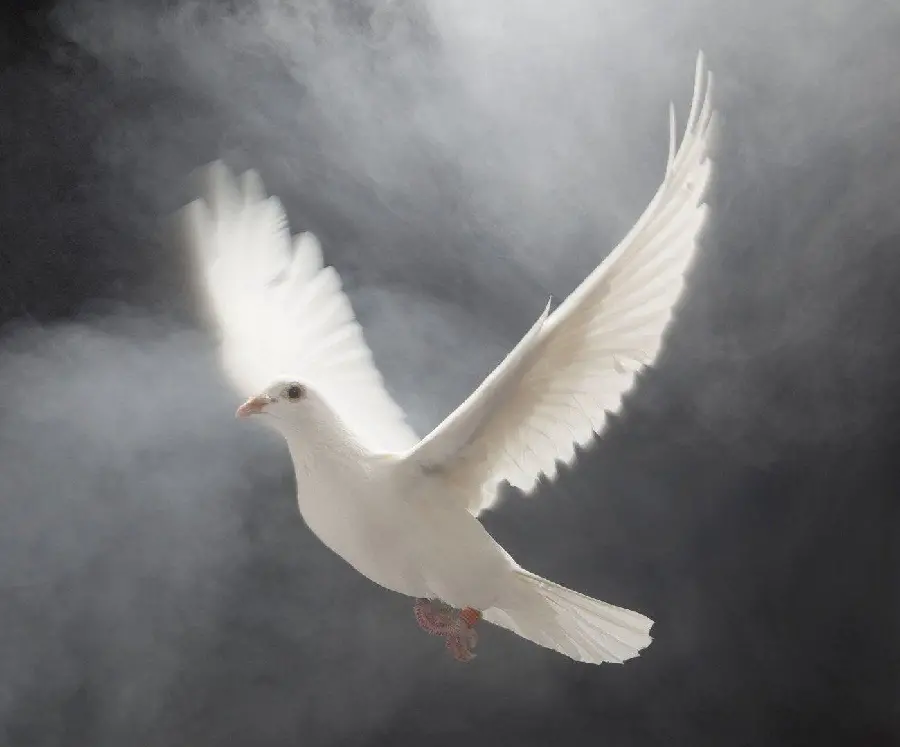 تصویر خاص، فانتزی و سیاه از کبوتر سفید با بالهای گشوده
