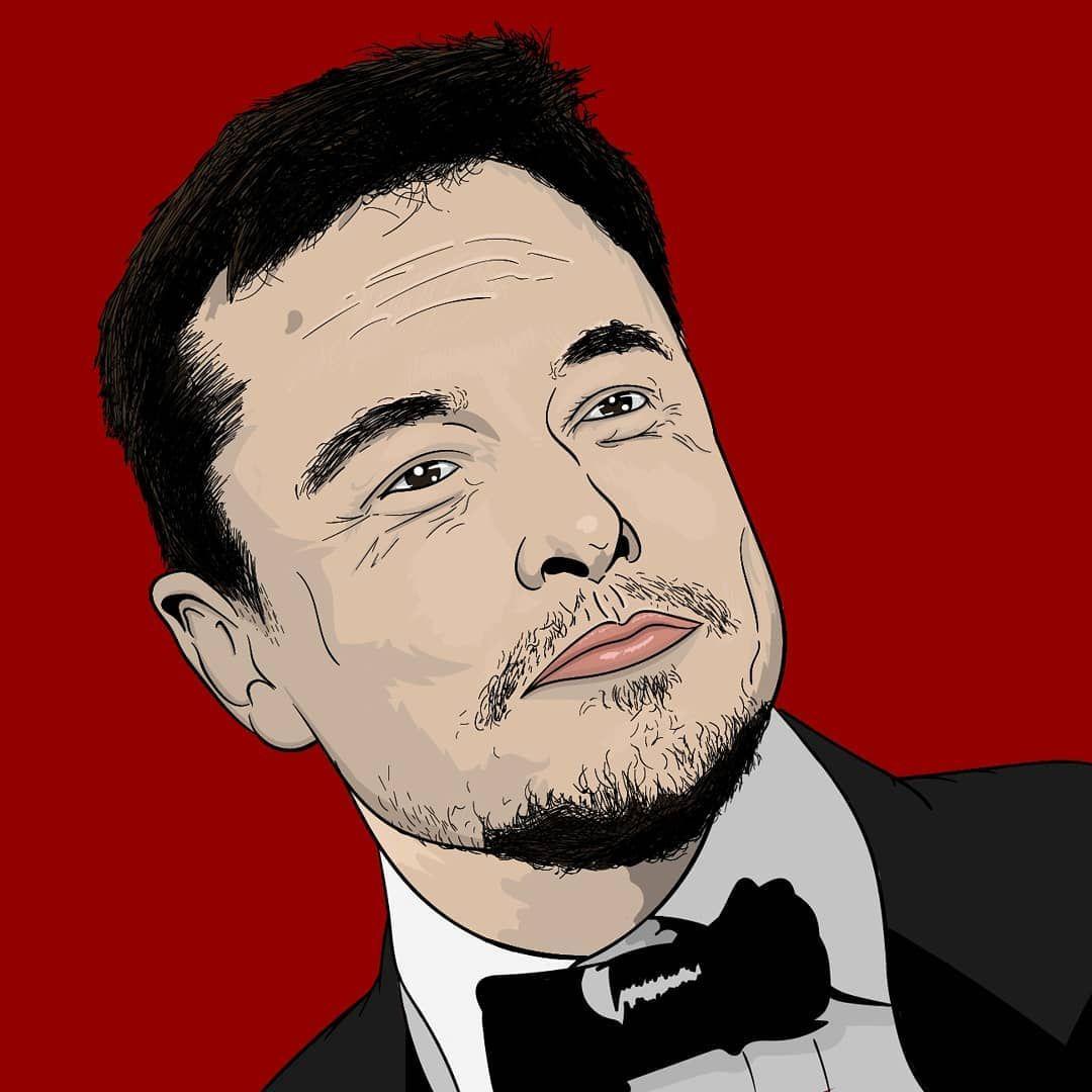 تصویر ایلان ماسک به صورت نقاشی در زمینه آبی