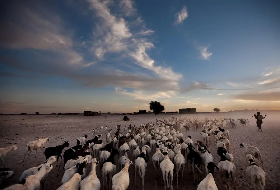 عکس گله بزها کنار چوپان در صحرا