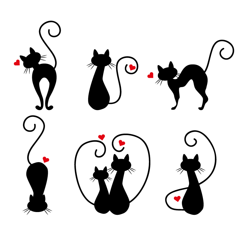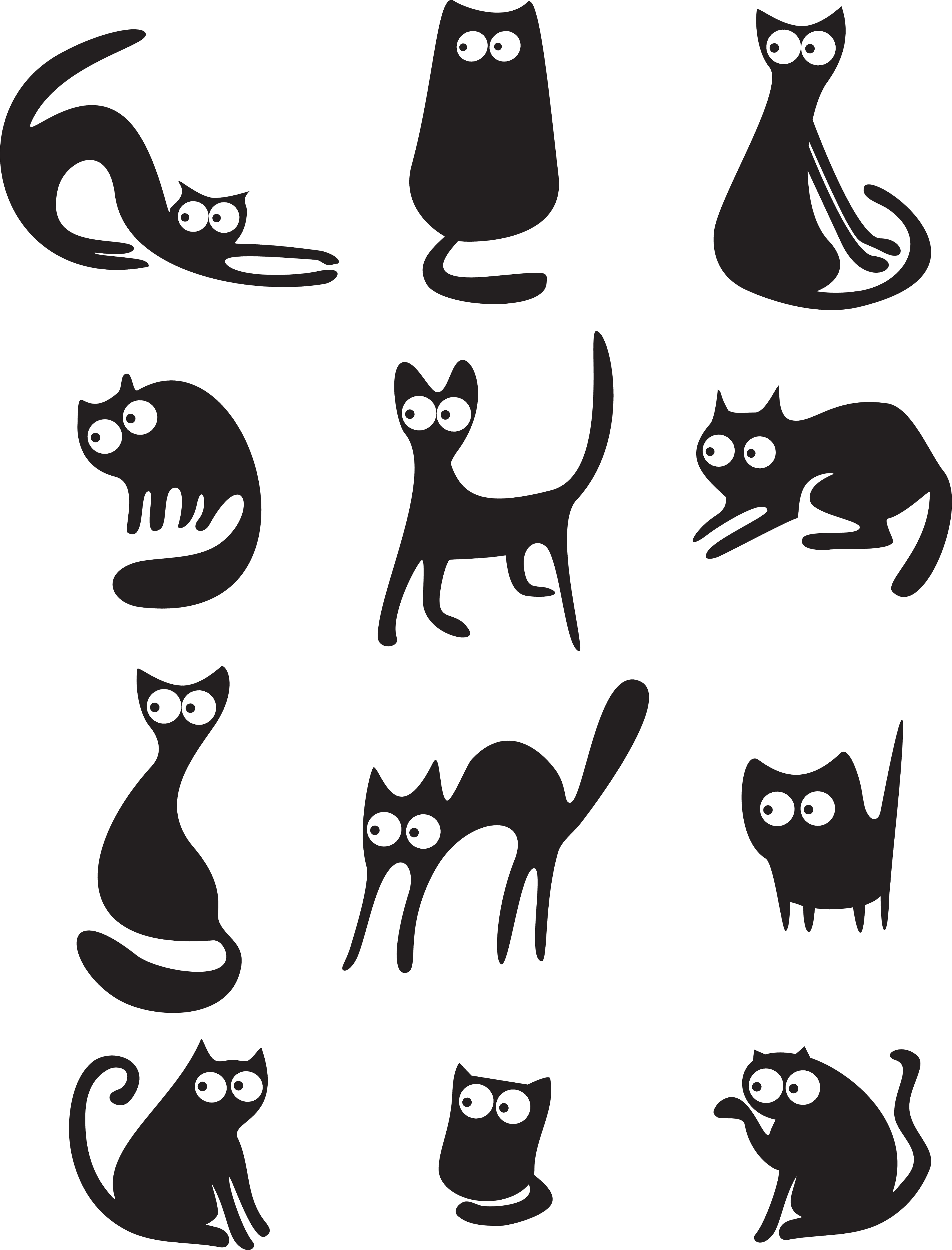 نقاشی PNG گربه های سیاه گوگولی و ملوس بدون زمینه و والپیپر